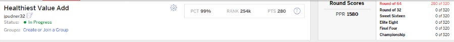 It's right here...only really stupid pick was Marquette. And my anti-B10 bias caused some problems too.  But still in decent shape overall.