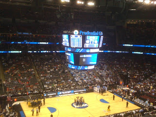 Newark is a hardened, shattered city.  It is nicknamed the Brick City after the many brick homes, although urban lore says this moniker came from an infestation of crack bricks.  Mayor Cory Booker is utilizing unending optimism to try to reverse a decades-long urban slide (as shown in the Sundance Channel’s documentary series by the city’s nickname).  Its one asset is land-locked Manhattan:  the alternative airport, the transportation infrastructure, and the available real estate give the politicians something to build on.   The Rock has been the cornerstone of these efforts, trying to draw in entertainment dollars from the metropolitan area and beyond.  The NCAA East Regional would be another national showcase opportunity.  Sadly, Newark’s nickname would foreshadow things to come for Marquette, however.